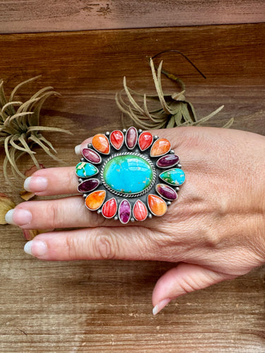 Adjustable Cluster Ring – Sonoran Gold & Spiny Oyster by E. Richards, Native Made