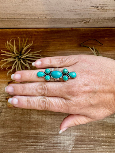 Adjustable Kingman Turquoise Statement Ring – USA Made, 9 Stones