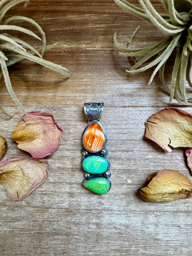 3-Stone Pendant – Orange Spiny & Green Turquoise by Boyd Ashley