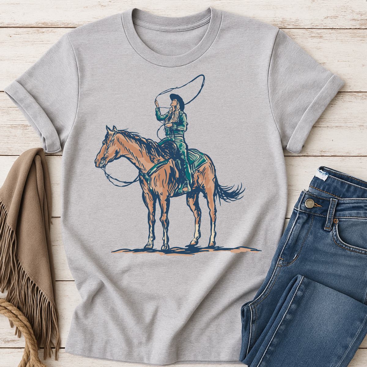 <!-- short-go cowgirl tee cowgirl rope graphic tee western graphic shirt gildan softstyle cowgirl tee hand drawn cowgirl tee western apparel for women cowgirl horseback shirt -->