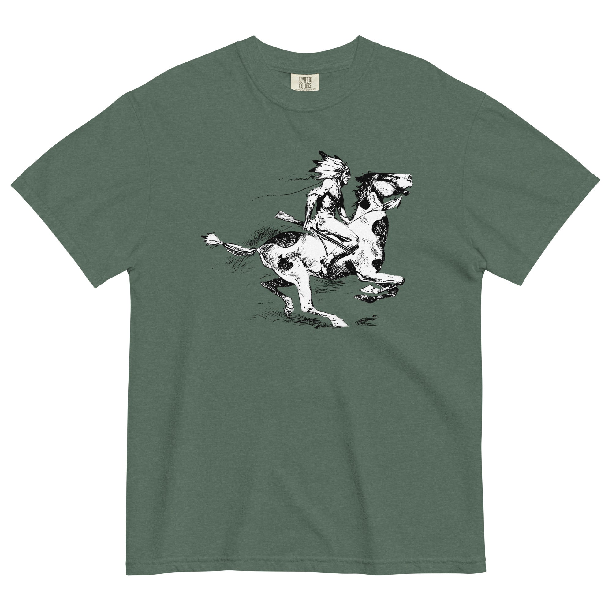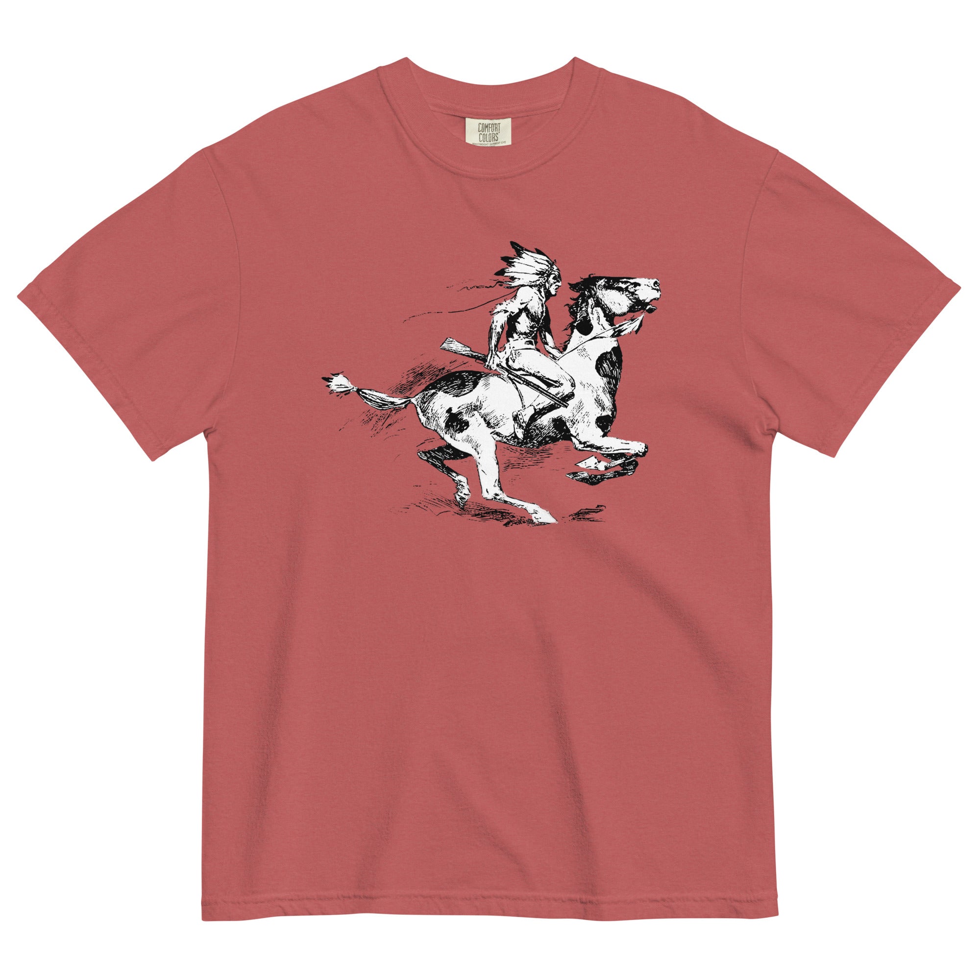 Bold. Fierce. Timeless. The Ghost Warrior Tee features a powerful design of an Indian warrior riding a running paint horse—a tribute to grit, spirit, and the untamed West. This design brings history and strength together in one striking graphic that feels as legendary as the story it tells.