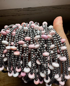 Handcrafted with love by The Bijoux FAB, this 15-inch necklace (plus extender) blends timeless sterling silver pearls with stunning pink conch shell saucer beads. We used a mix of 4 mm and 5 mm sterling silver pearls, and spaced between each 5 mm is a beautiful 8 mm pink conch shell saucer bead. Every necklace is unique due to the natural variation in the conch shell’s tones—making each one truly one of a kind.