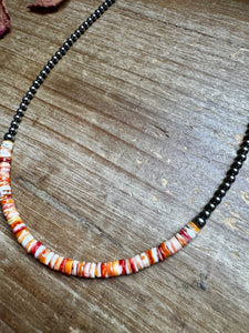 Center Accent: Orange spiny oyster heishi (colors will vary)