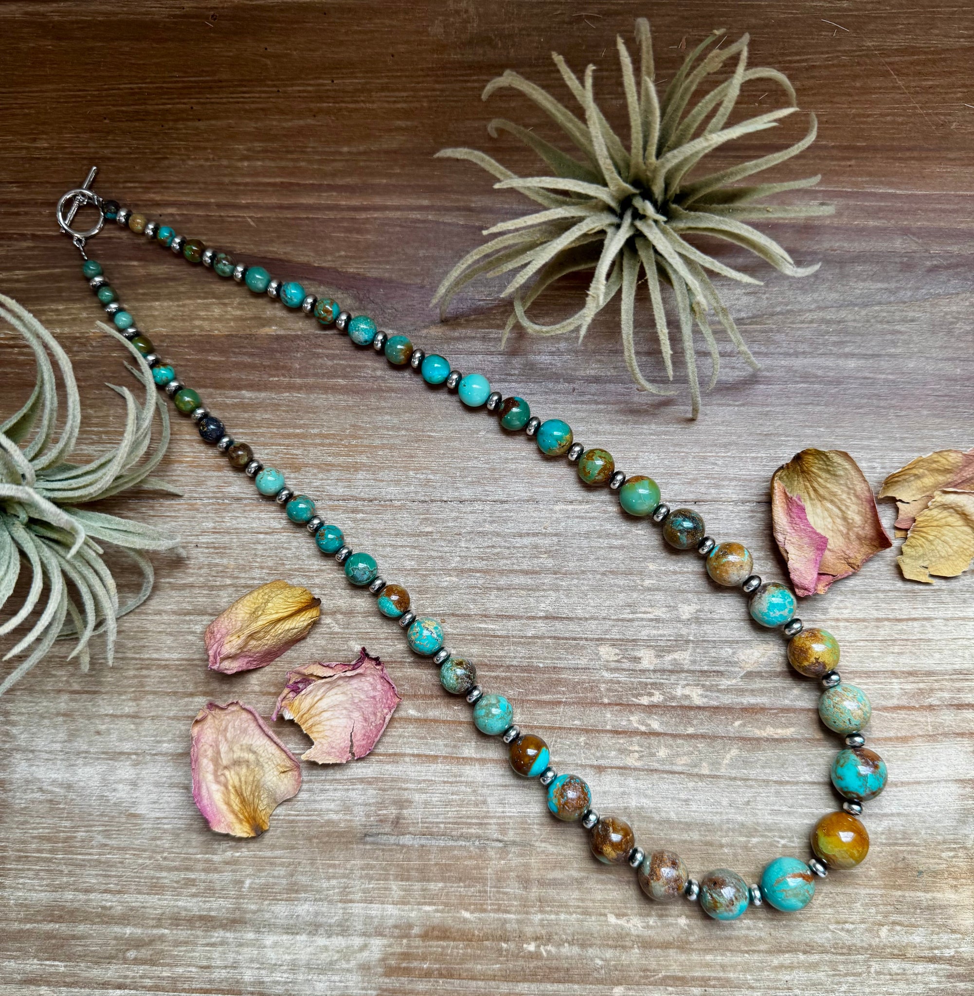 This bold 24-inch necklace features a stunning lineup of graduated round turquoise beads—each one with its own wild, unique color and matrix. No filters needed... the color on this necklace is insane in real life. ONE FOR THE PRICE