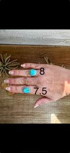 Bold color, clean design. These Sonoran Gold turquoise rings are set in sterling silver with natural, earthy greens and golden matrix patterns. Choose your size—either 7.5 or 8. Each stone is slightly different, giving you a unique piece that stands out on its own.