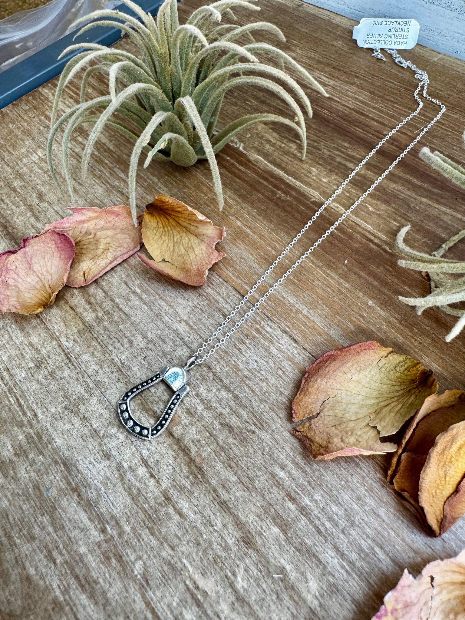 Elegant and equestrian, this 18-inch sterling silver necklace features a classic stirrup pendant from the Hada Collection. A sleek everyday piece with refined detail—perfect for horse lovers and minimalist jewelry fans.